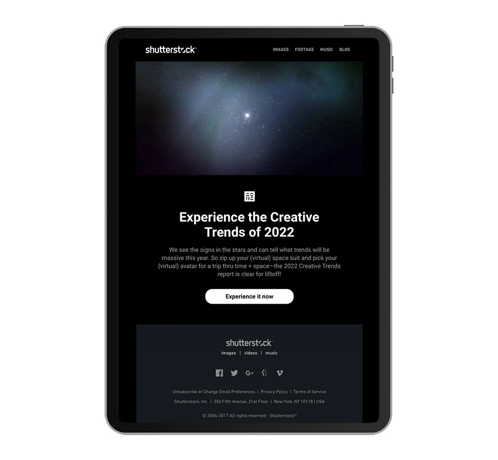 Shutterstock’s 2022 Creative Trends Report focused on the exploration of "time and space" in response to the changing world and people's altered perceptions due to the pandemic.